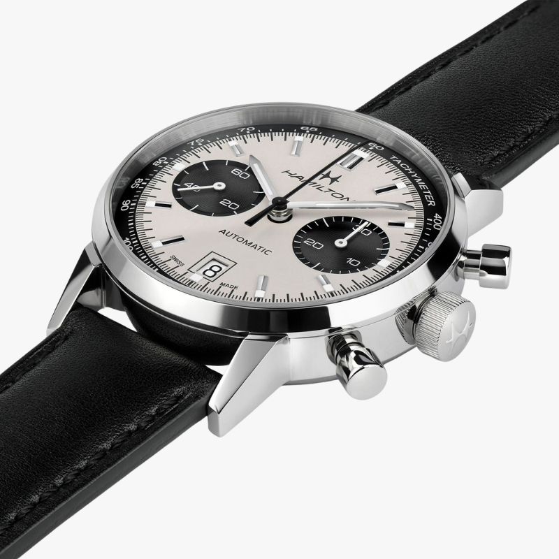 L’Intra-Matic Auto Chrono di Hamilton è una rivisitazione in chiave moderna di una creazione iconica del 1968 per un look allo stesso tempo classico e sportivo. Combinando un autentico stile anni ‘60 con l’esclusivo movimento automatico H-31, lo speciale quadrante effetto “panda” attirerà sicuramente gli sguardi di tutti.