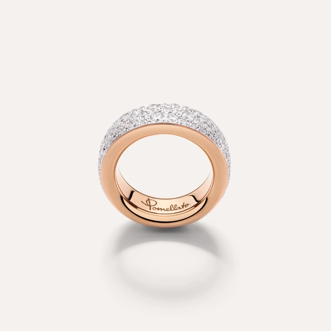 Anello oro rosa 18k con pavè di diamanti bianchi.