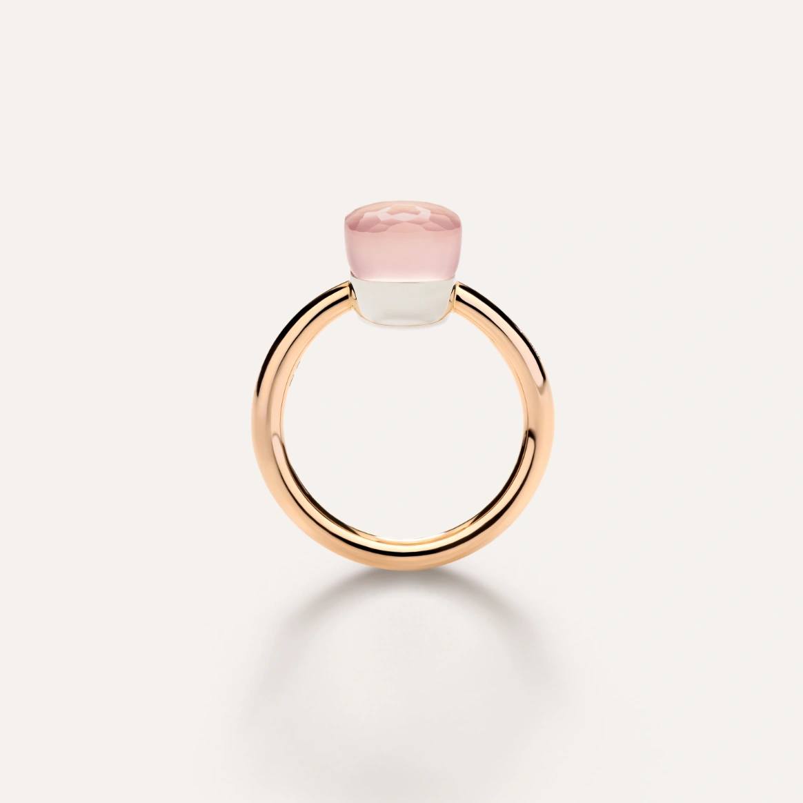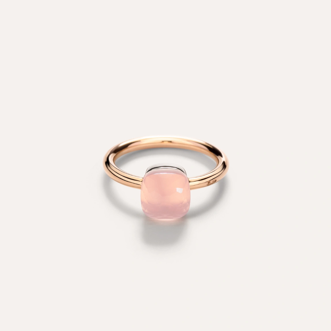 Anello oro rosa e bianco 18k con quarzo rosa.