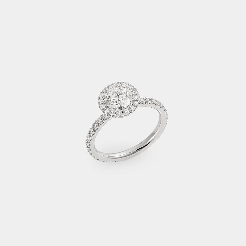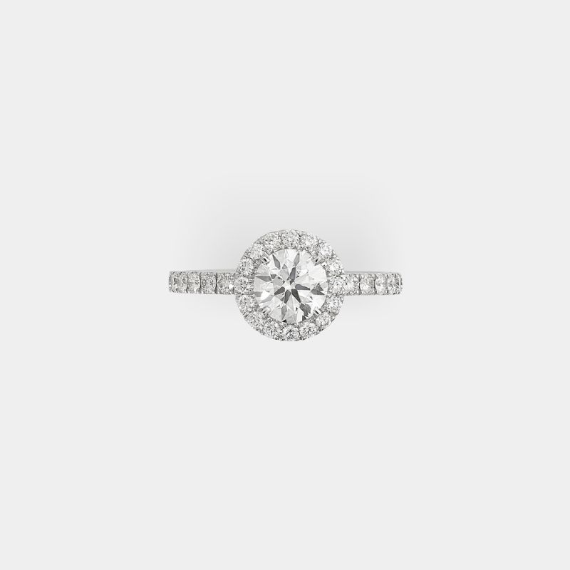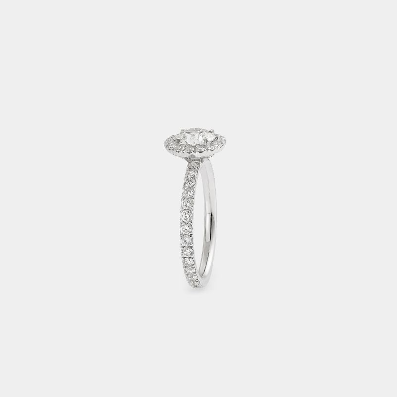 Anello Solitario in oro bianco 18K con diamante taglio Rotondo e diamanti sul gambo. Disponibile in diverse carature e caratteristiche di colore e purezza. Pietra centrale certificata.