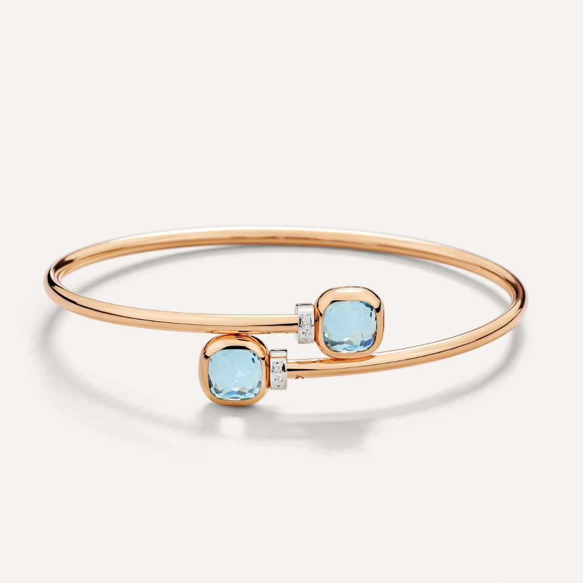 Bracciale in oro rosa e bianco 18kt con topazi azzurri e diamanti bianchi.