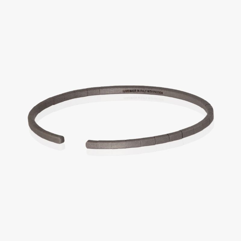Bracciale a struttura elastica in titanio con diamanti bianchi.