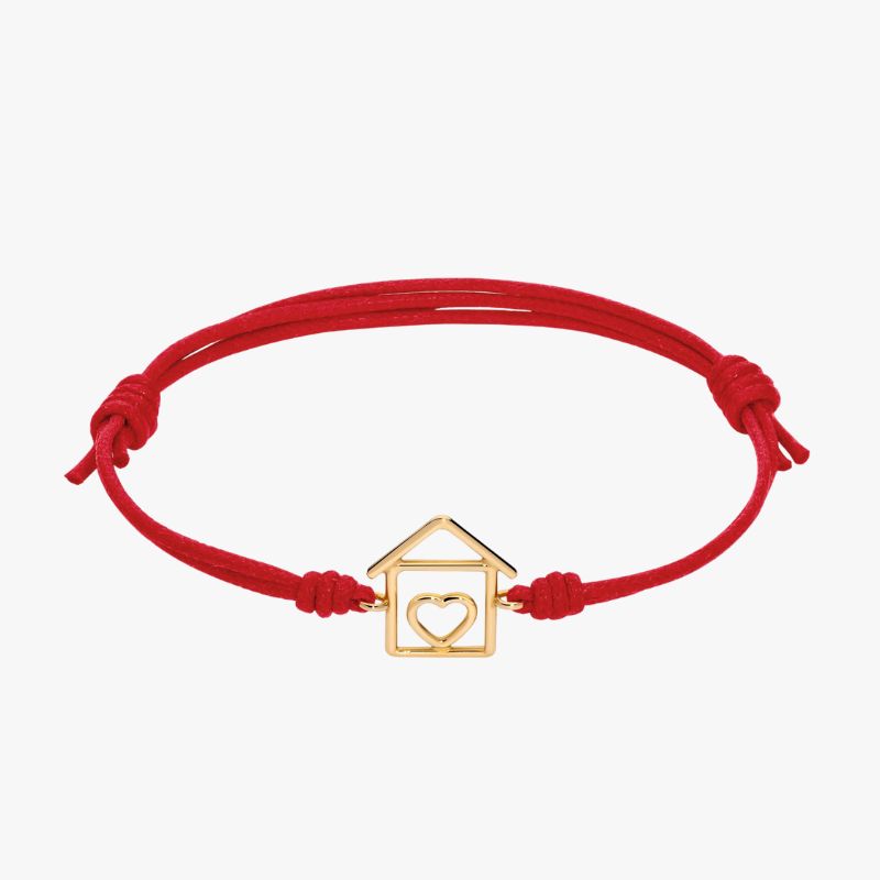 Bracciale con cordino e casetta in oro giallo 18kt.