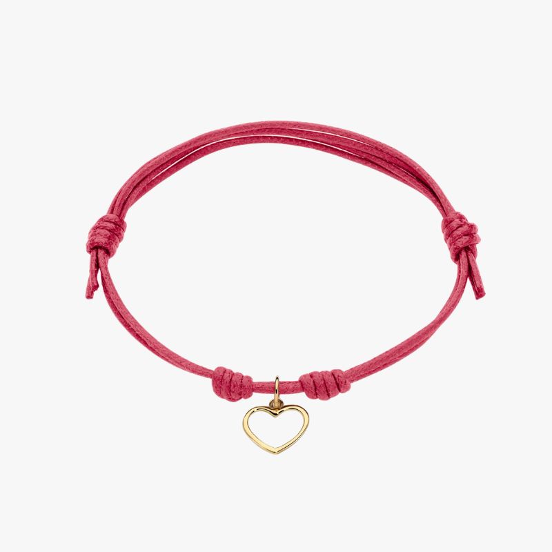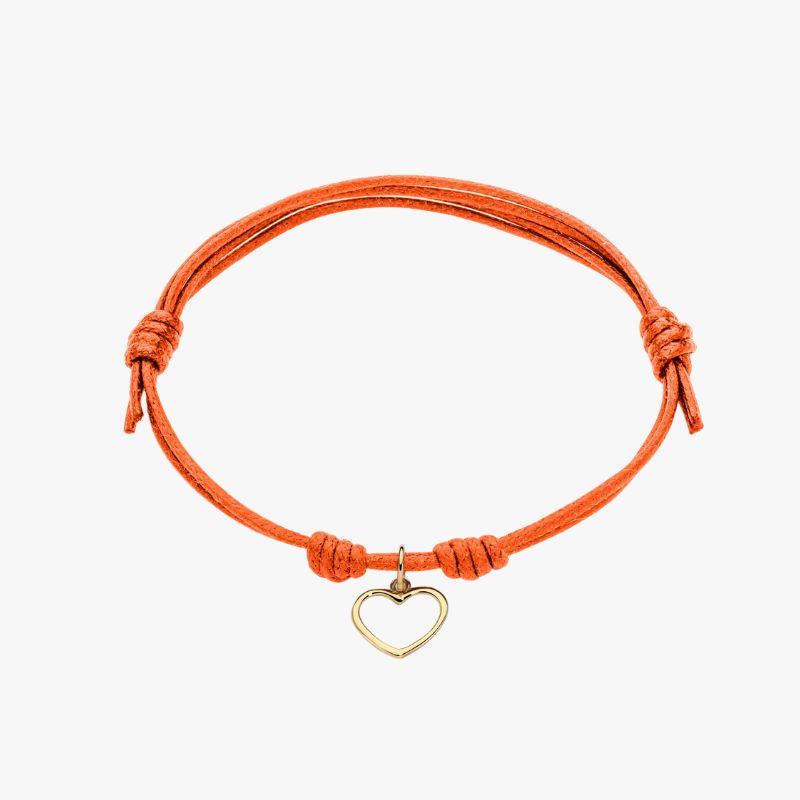 Bracciale con cordino e cuore in oro giallo 18kt.