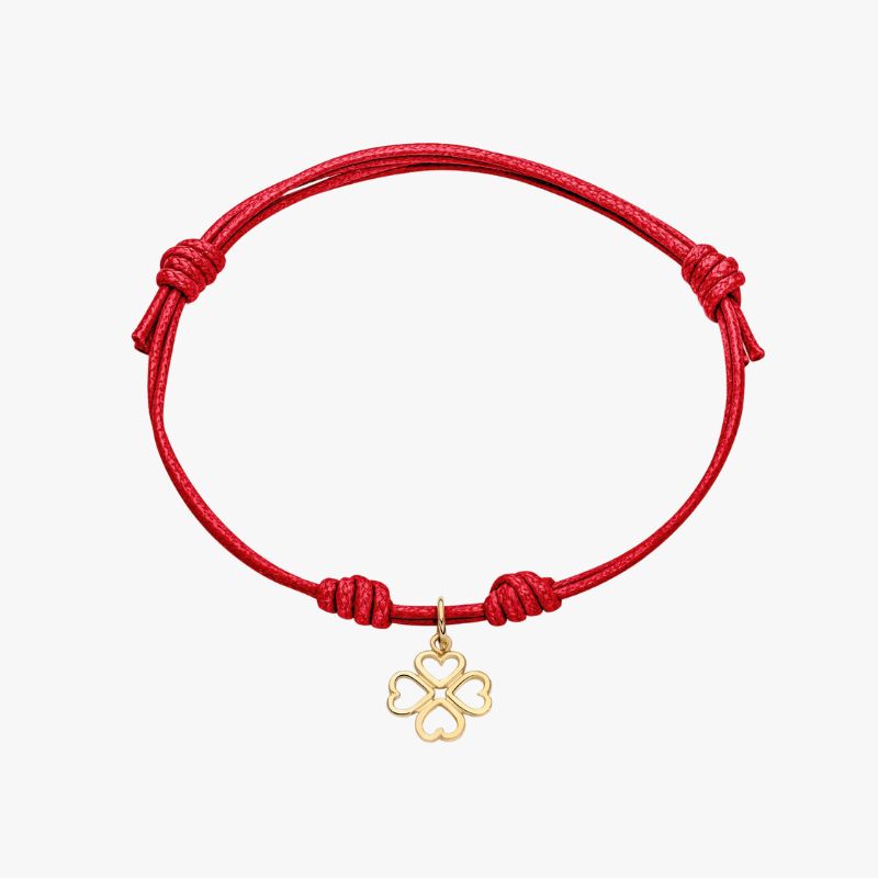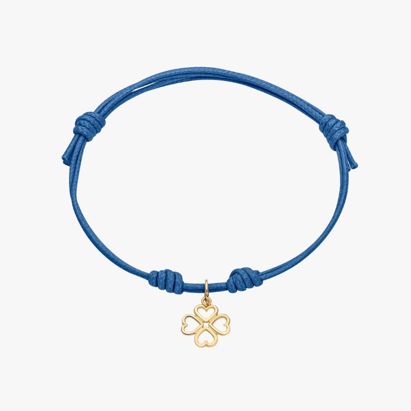 Bracciale con cordino e ciondolo quadrifoglio in oro giallo 18kt.