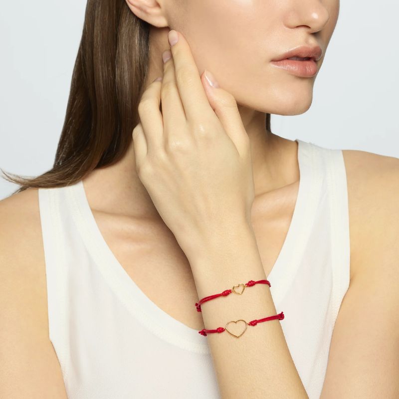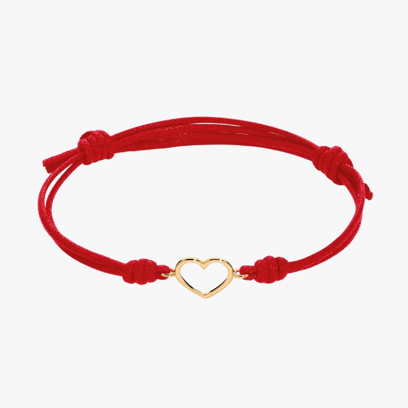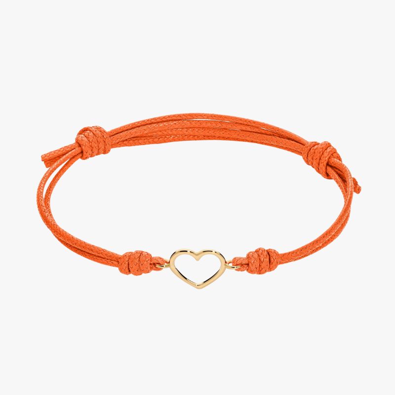 Bracciale con cordino e cuore in oro giallo 18kt.