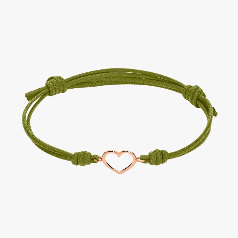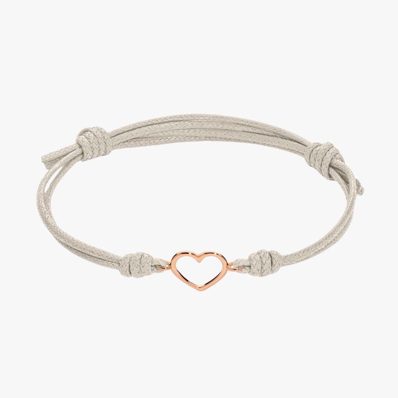 Bracciale con cordino e cuore in oro rosa 18kt.