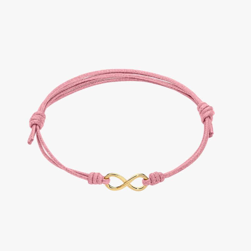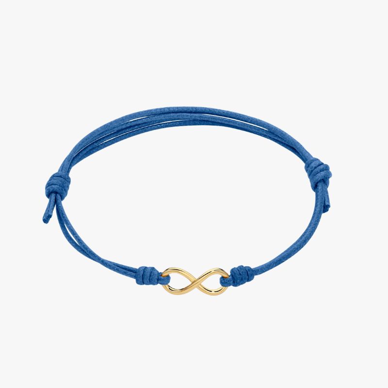 Bracciale con cordino e simbolo dell’infinito in oro giallo 18kt.