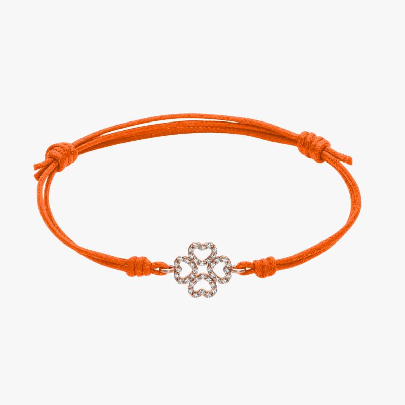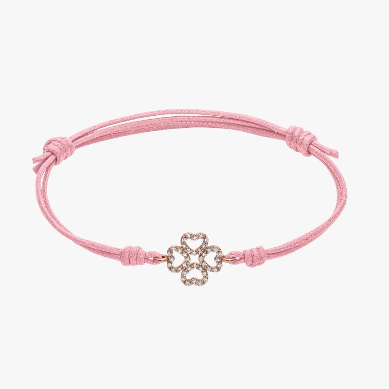 Bracciale con cordino e quadrifoglio in oro rosa 18kt con diamanti.