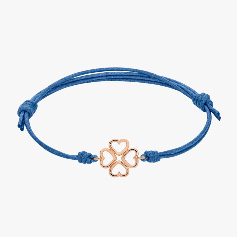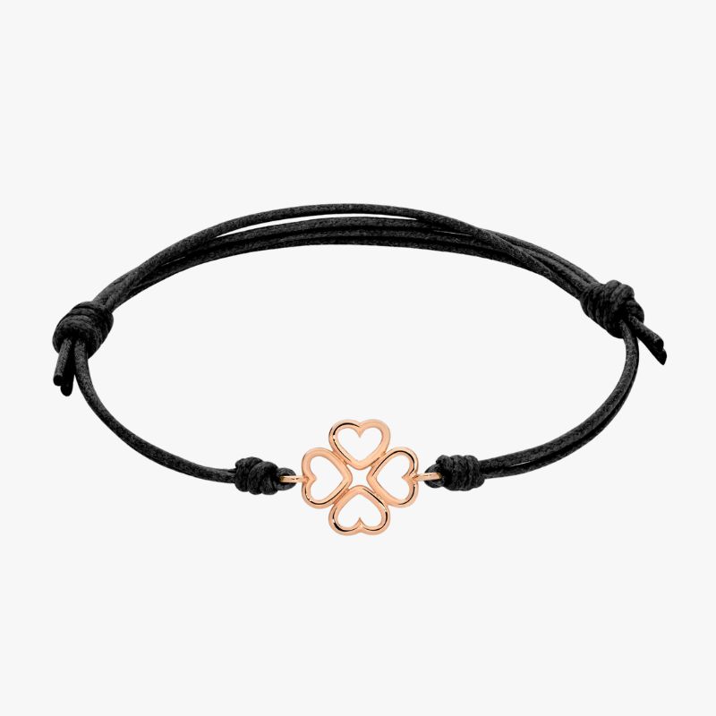 Bracciale con cordino e quadrifoglio in oro rosa 18kt.