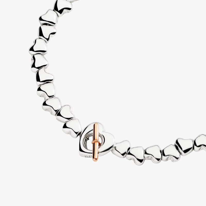 Bracciale in argento 925, catena e anello brisè in acciaio e t-bar in oro rosa 9K.