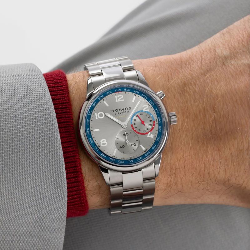Con il nuovo calibro automatico con funzione ore nel mondo DUW 3202, Club Sport neomatik è perfetto per la vita di tutti i giorni, e per il mondo intero. Un orologio sportivo ed elegante, con funzione ore nel mondo. Le differenze tra i 24 fusi orari e l’orario di casa prescelto sono visibili con un solo sguardo. Il compagno ideale per i cittadini del mondo e per chi viaggia di frequente.