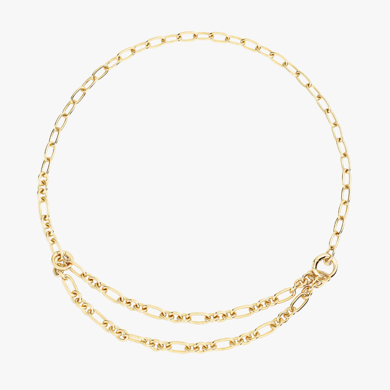 Collana in argento dorato oro giallo 18K con 2 maglie apribili.