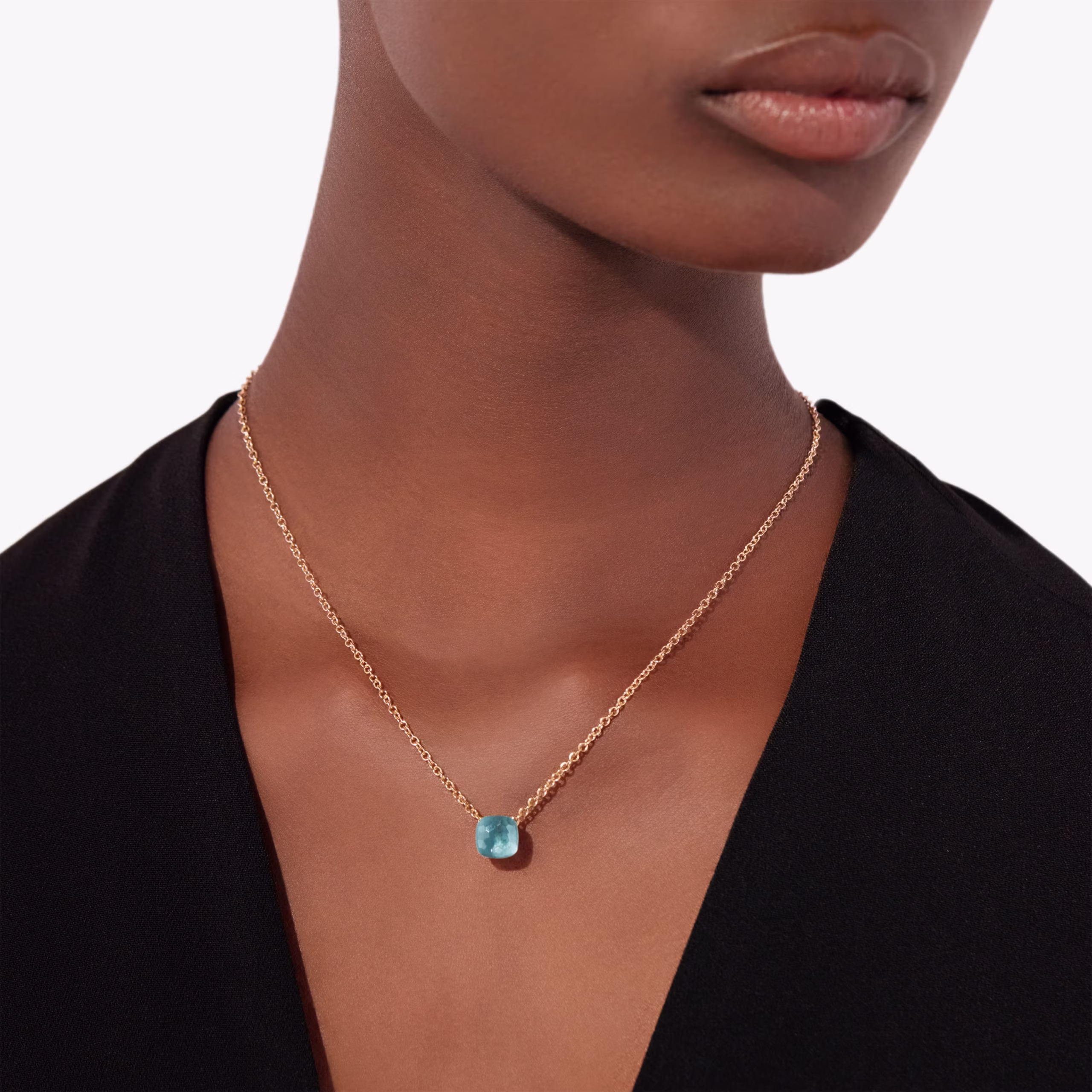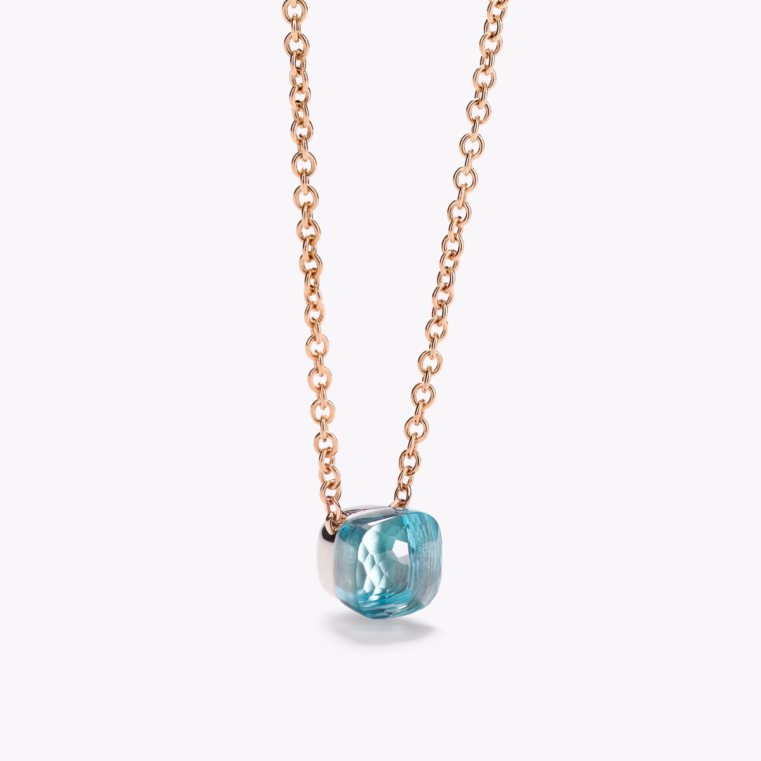 Collana in oro rosa e bianco 18k con topazio azzurro.