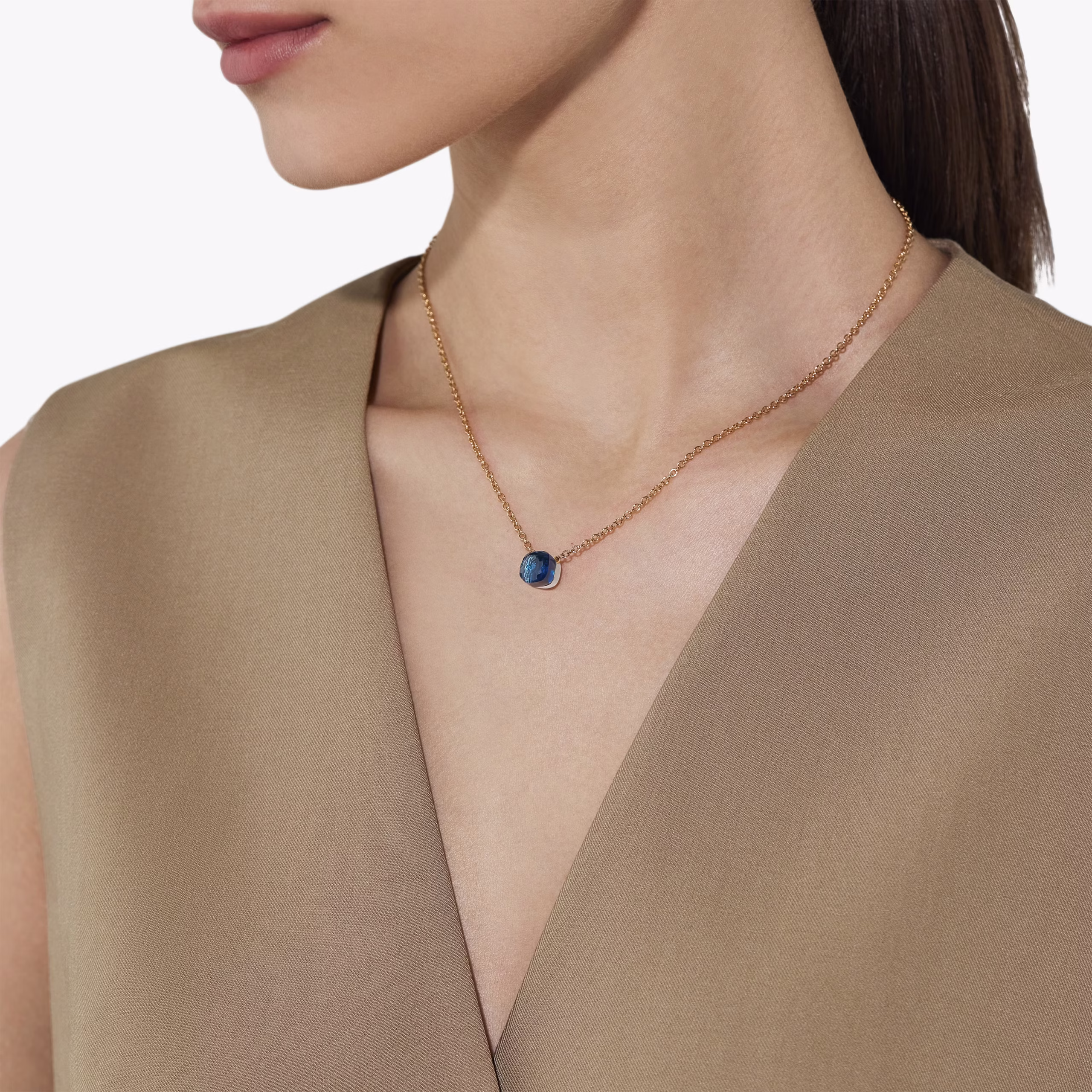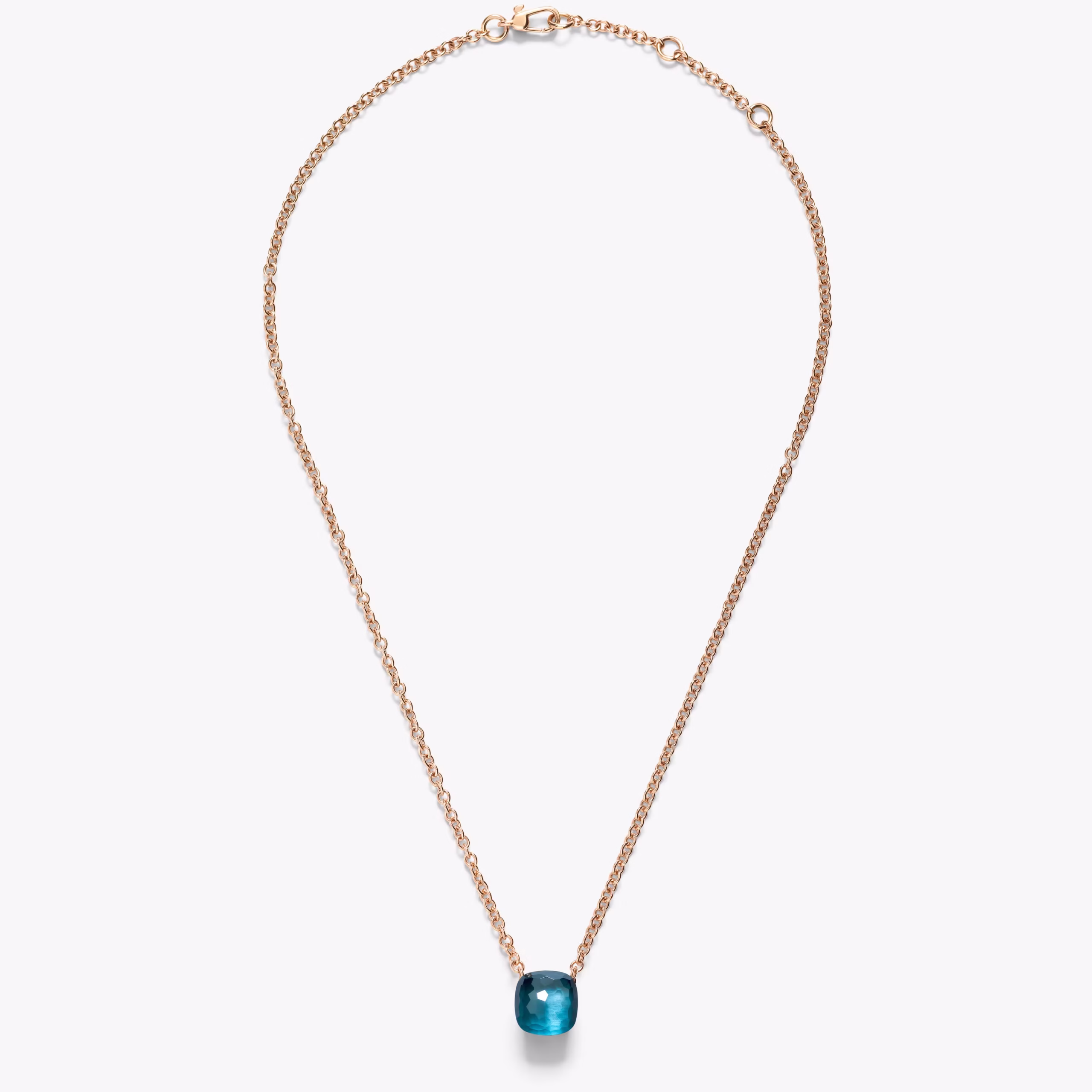 Collana in oro rosa e bianco 18k con topazio blu london.