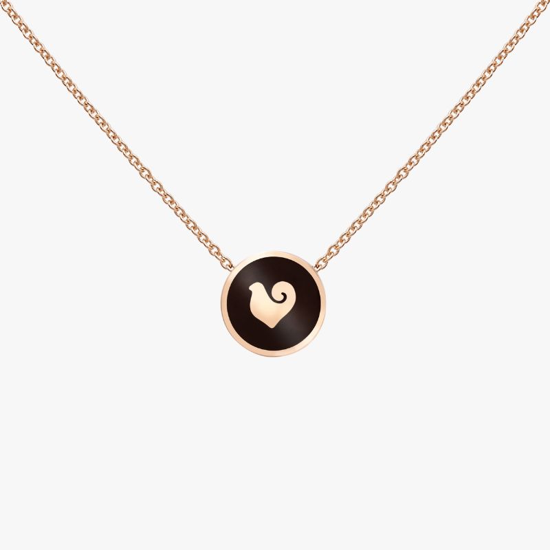 Collana 40-42 cm con pendente in oro rosa 18kt, pavè di diamanti neri e smalto nero.