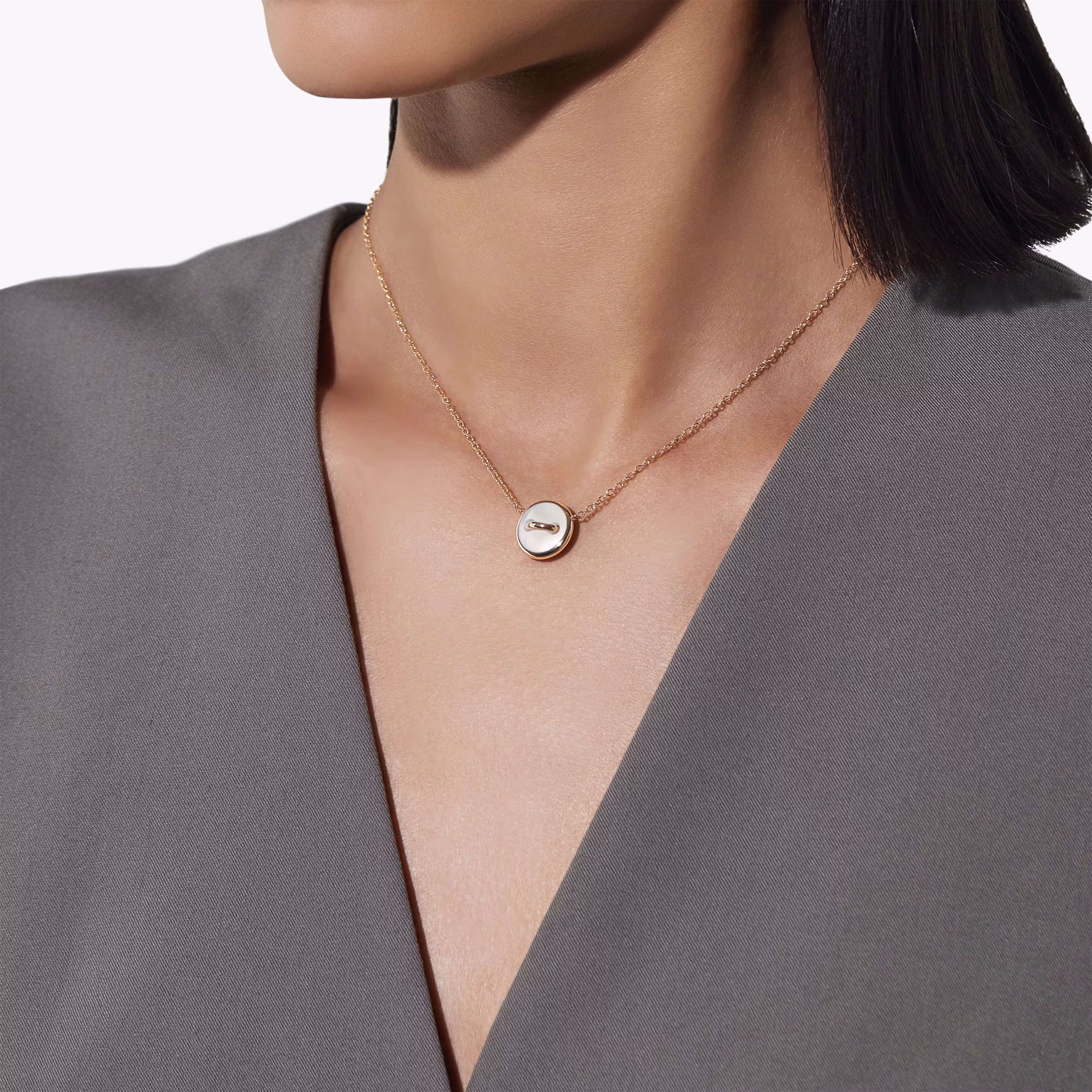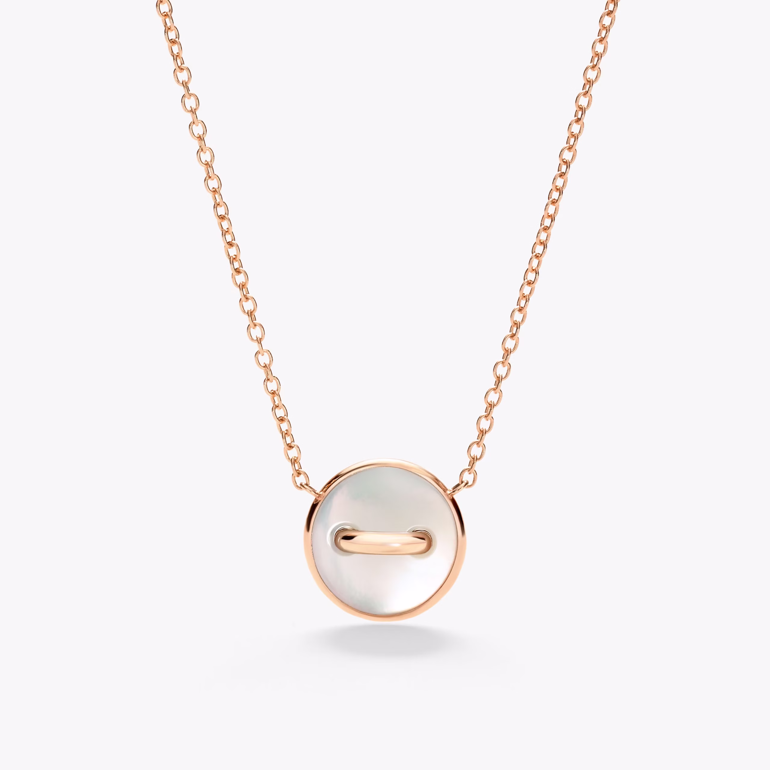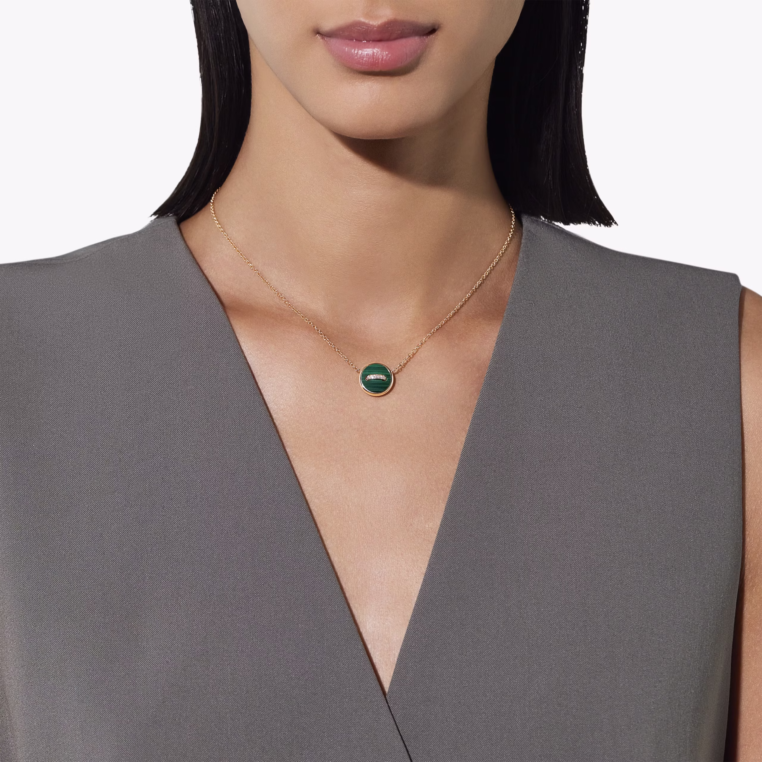 Collana reversibile in oro rosa 18k con malachite, madreperla bianca e diamanti bianchi.