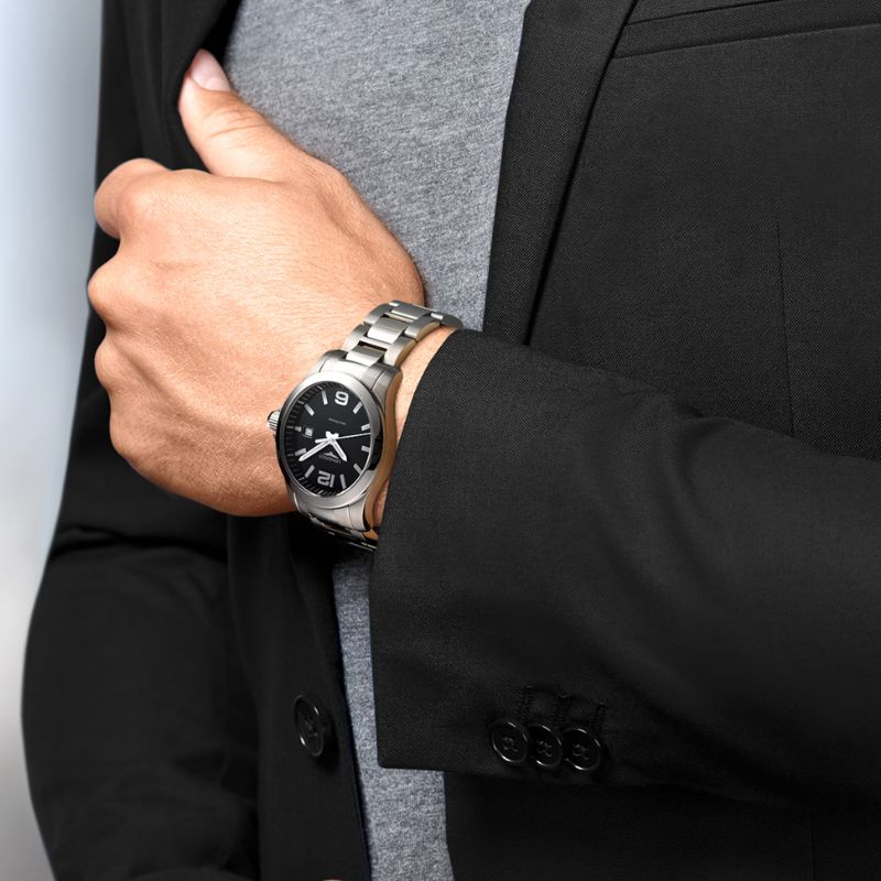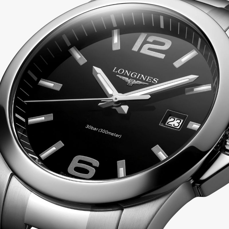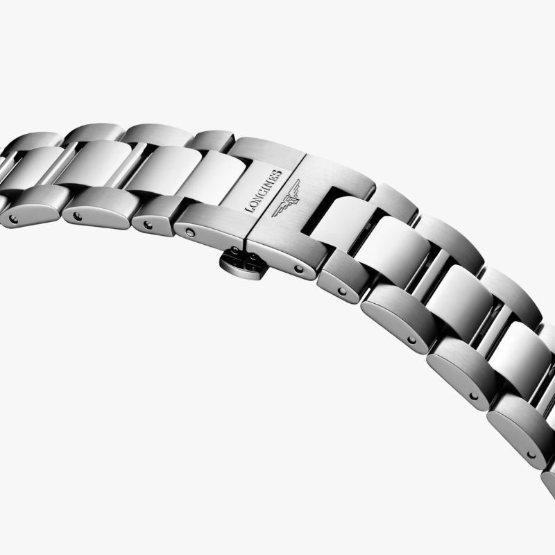 Corona a vite, impermeabile fino a 30 bar, vetro zaffiro antigraffio con trattamento antiriflesso sul lato interno. Quadrante nero laccato lucido, swiss super-luminova®. Bracciale in acciaio inossidabile, con chiusura déployante a tripla sicurezza e meccanismo di apertura a pressione.