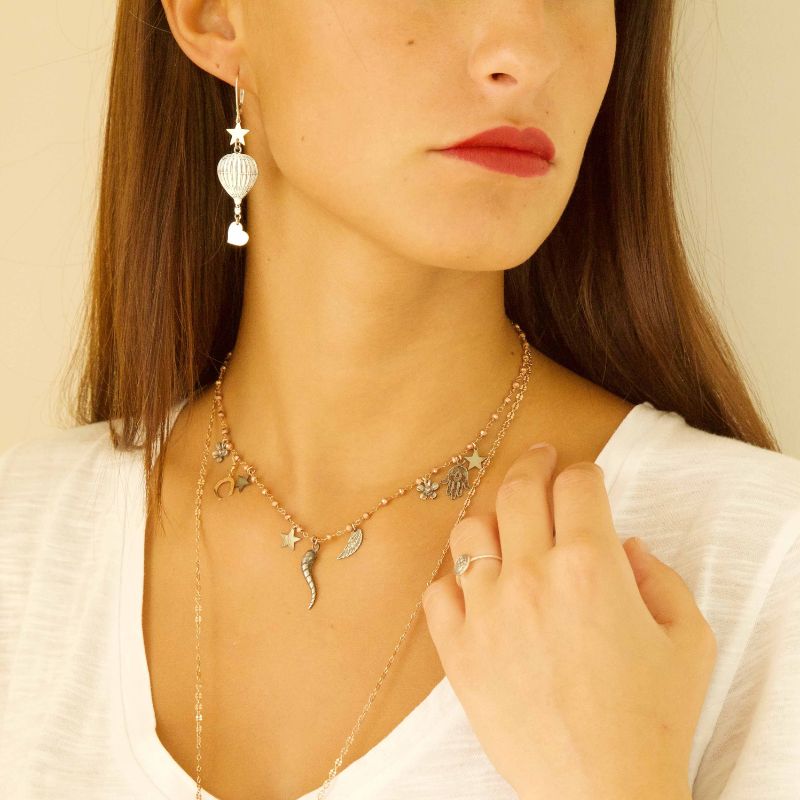 Orecchino singolo in argento 925 placcato in oro rosa ad alto spessore ed alta resistenza con monachella a scatto con soggetto tridimensionale.