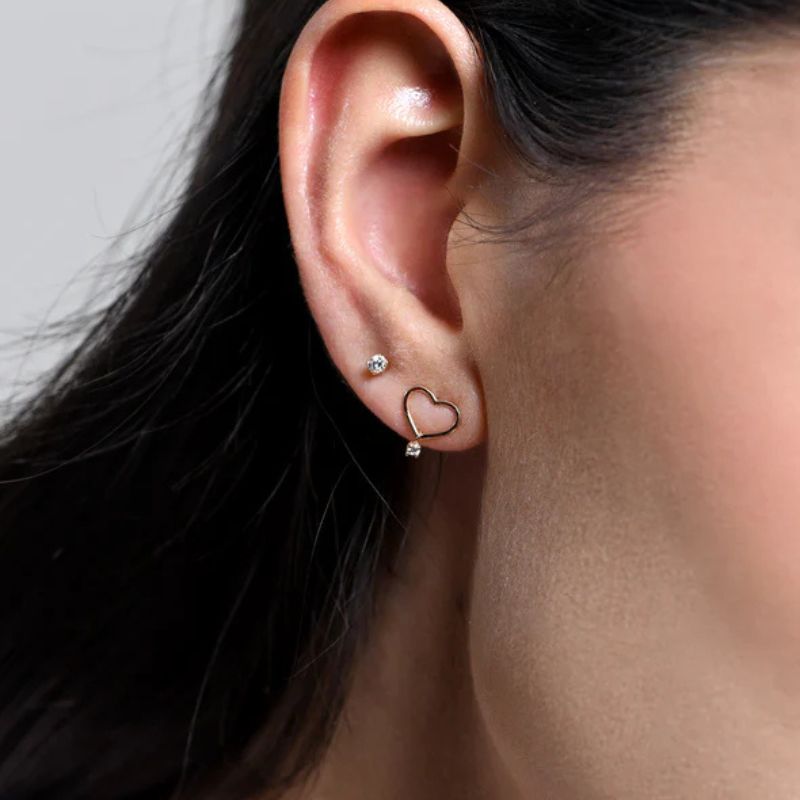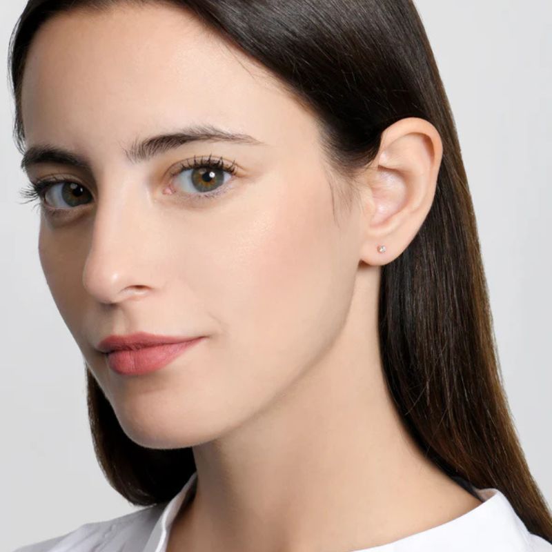 Orecchino in oro rosa 18kt con diamante.