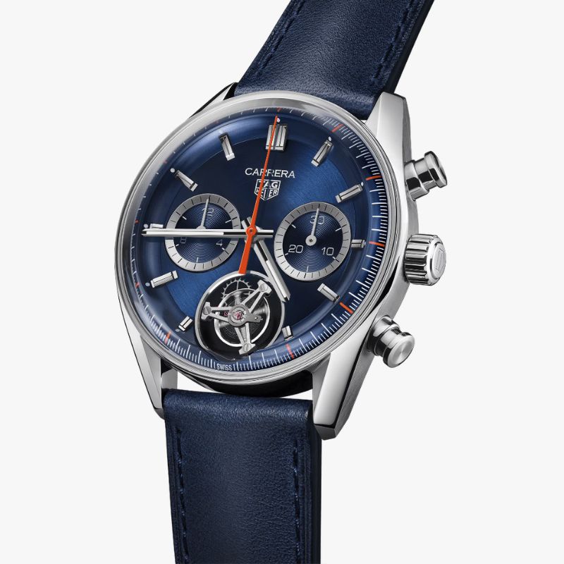 Ancora prodigioso dopo 60 anni. Questa versione unica del modello TAG Heuer glassbox da 42 mm festeggia il 60° anniversario del Carrera con grande disinvoltura, grazie al quadrante blu intenso con accenti arancioni e al movimento tourbillon di manifattura, il Calibre TH20-09 automatic COSC.