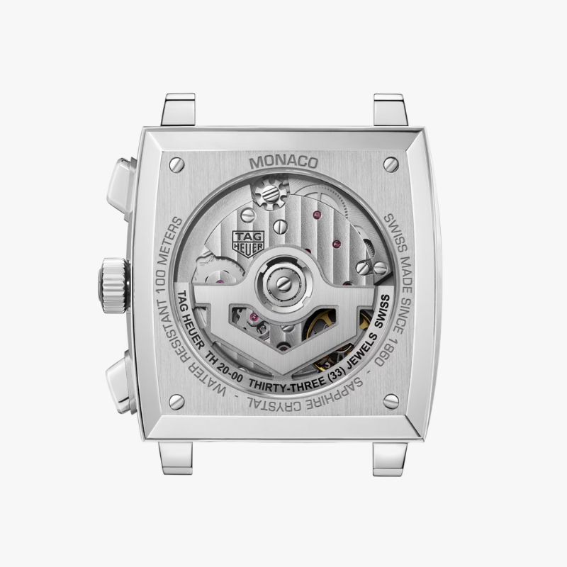 Automatico, 39 mm, Acciaio. Cinturino in alligatore. Il primo Monaco dotato del movimento di manifattura TH20-00. Un design vintage intramontabile fedele al Monaco blu originale e al suo volto quadrato, completato da 80 ore di riserva di carica.